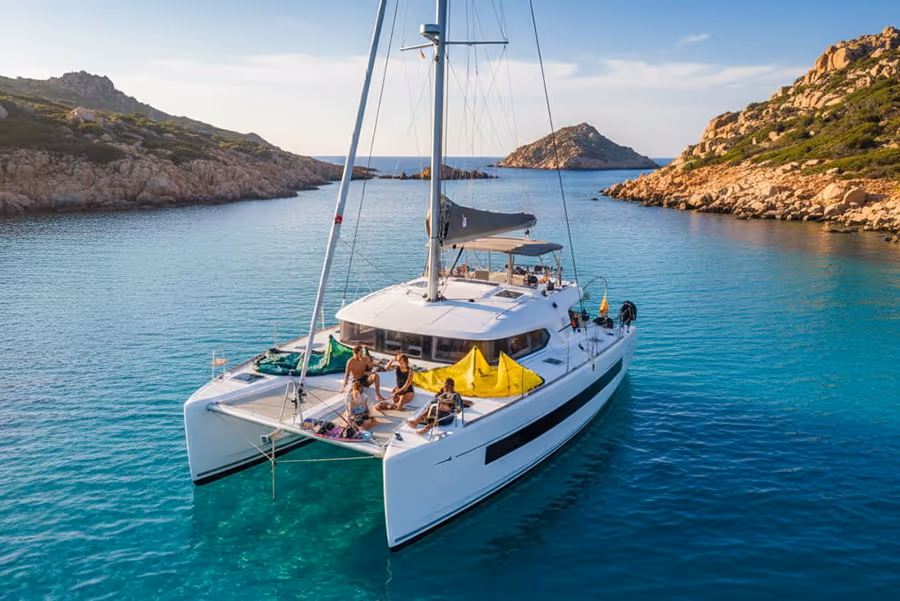 Mit unserem 14-Meter-Katamaran erlebst du eine Woche voller Kiten, Segeln und Gemeinschaft an den schönsten und einsamsten Spots des Mittelmeers. Abenteuer die verbinden, Momente die bleiben.