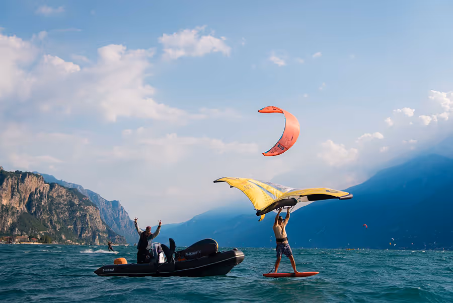 Der Privat Wingkurs am Gardasee ist genau das Richtige für dich, wenn du in besonders entspannter Atmosphäre oder extra intensiv und schnell das Wingfoilen erlernen willst. Dich erwartet eine private Theorieeinheit und eine Praxiseinheit inklusive neuestem Wingmaterial auf deinem eigenen Boot. Unser VDWS oder IKO lizensierter Winglehrer geht individuell auf dein Level und deine Lerngeschwindigkeit ein. Außerdem bekommt jeder Teilnehmer sein eigenes Material und hat somit die maximale Wasserzeit. Wir sind immer direkt am Schüler und können noch besser auf dich eingehen. Sicherheit und Qualität first!